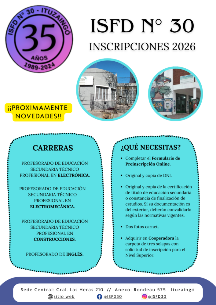 Este es el Sitio Web Oficial del Instituto Superior de Formación Docente N° 30, «Leonardo Da Vinci». Ahora también podés seguirnos en: ►Facebook @isfd30 ► Instagram @isfd.30 ►Twitter @isfd30 Este Instituto Superior de Formación Docente forma parte del sistema de educación pública de gestión estatal. A través de este sitio, nuestro Instituto podrá comunicar novedades, acercar información, compartir experiencias y brindar apoyo y asesoramiento a estudiantes, docentes e interesados en formar parte de esta comunidad educativa.