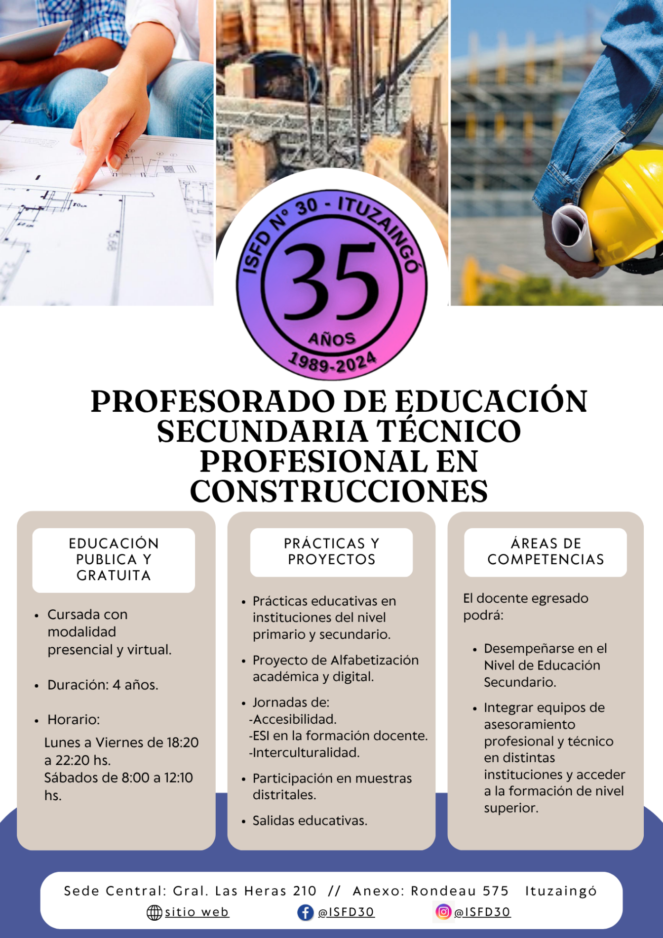 El Profesorado de Educación Secundaria Técnico Profesional en Construcciones permitirá, a quien egrese, articular los saberes propios del campo profesional y pedagógicos de la Educación Técnico Profesional abordando la enseñanza en diálogo con el contexto social, político, cultural y académico.